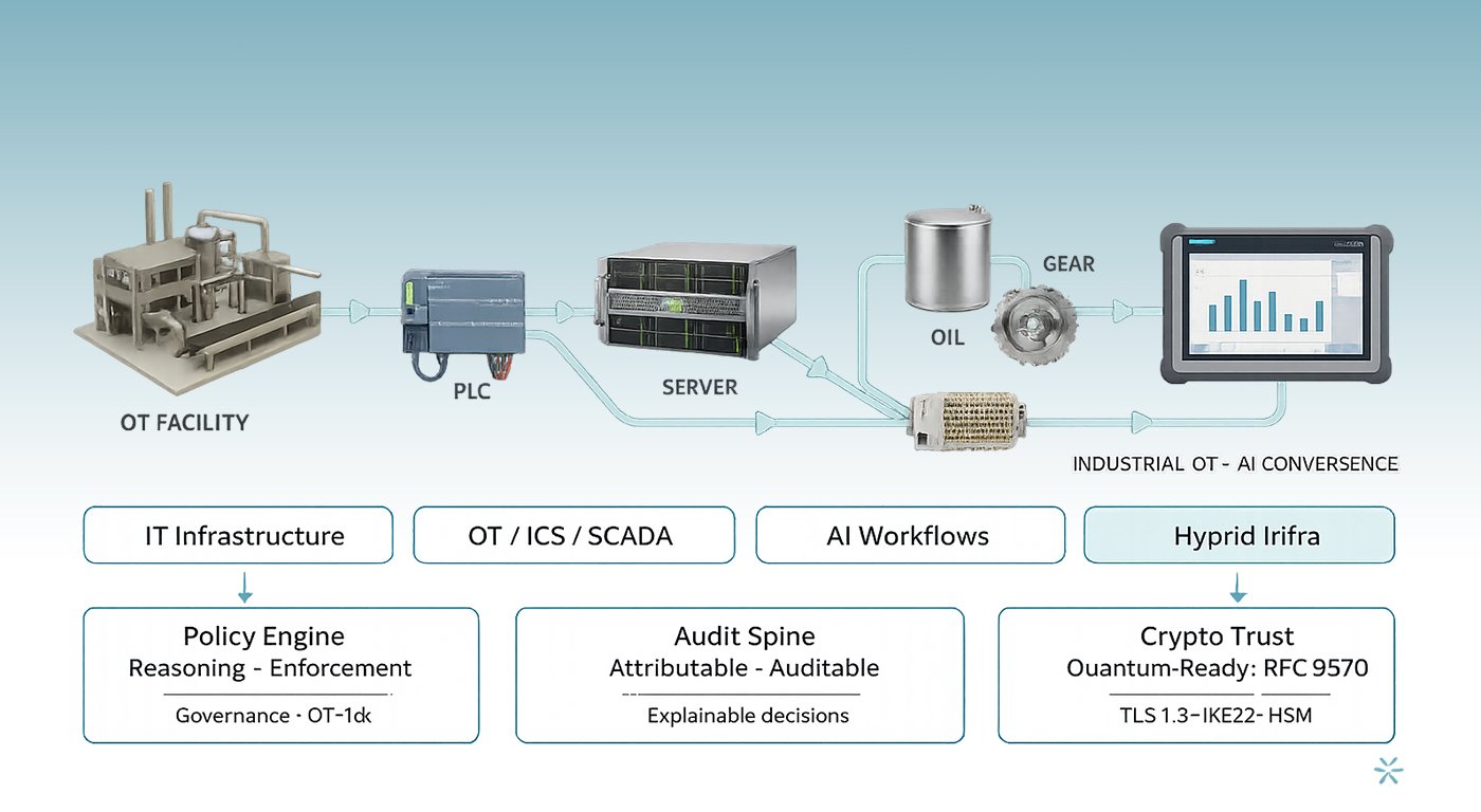 Policy-driven reasoning engines that govern AI behaviour and system actions, extending OT cyber risk management into autonomous AI workflows.